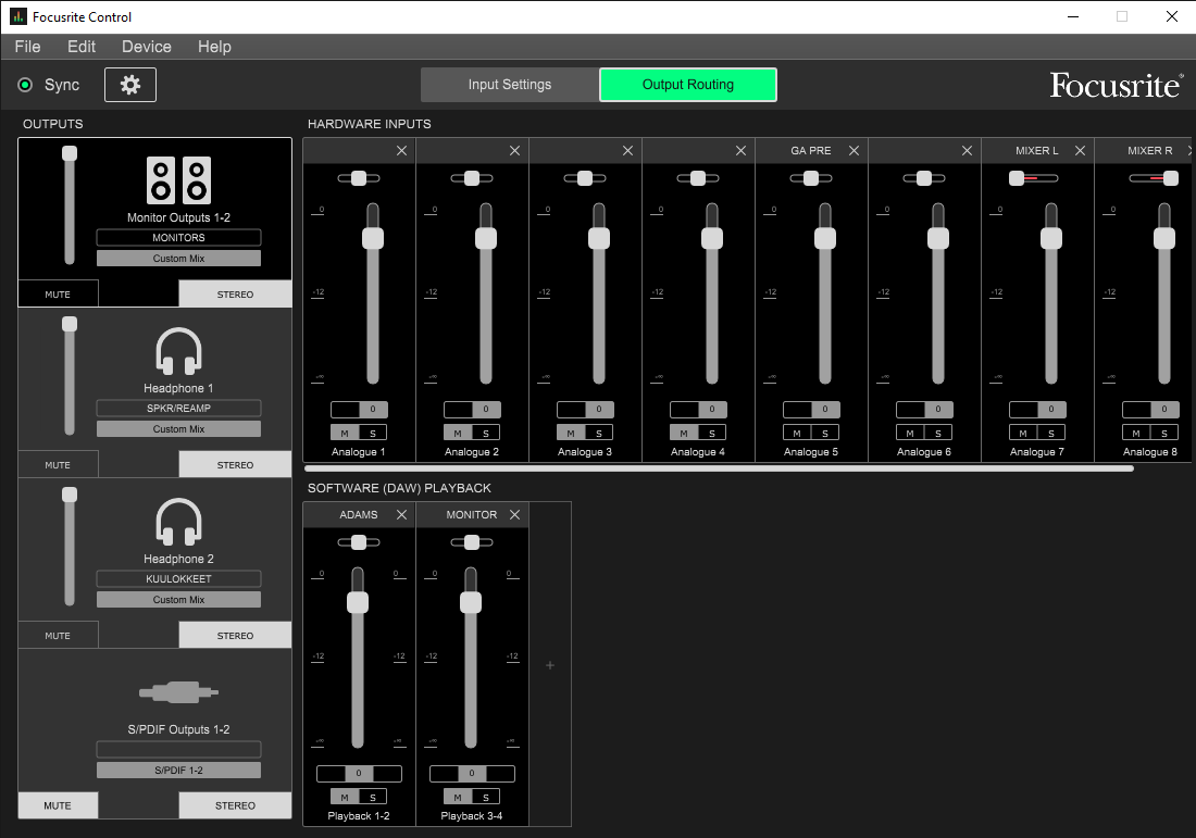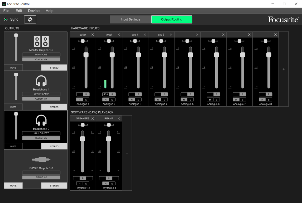 And here are some images about my Audio interface mixer settings I need to use while capturing.